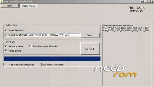 Launch ADT with acer_DownloadTool.exe.