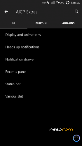 I again switch on and off on schedule. You told me Lots more tweaks in AICP extra menu, but I found nothing. Otvette please read more.