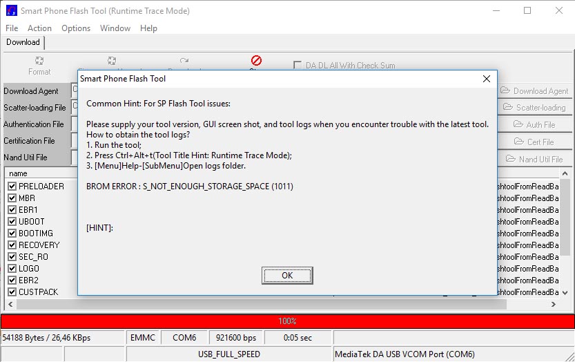 BROM ERROR : S_NOT_ENOUGT_STORAGE_SPACE(1011)