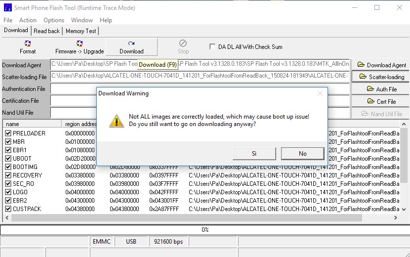Hello, I'm trying to flash but it shows me "Please make sure all neccessary images are checked to be downloaded for "Firmware Download"
