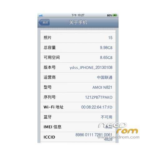ROM version number: ydss_IPHONE_20130108