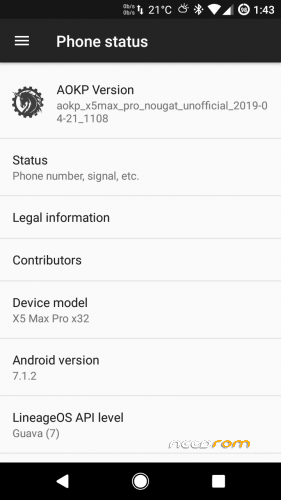 aokp_x5max_pro_nougat_unofficial_2019-04-21_1055.x32.r0.32.sp20190205.nogapps.zip