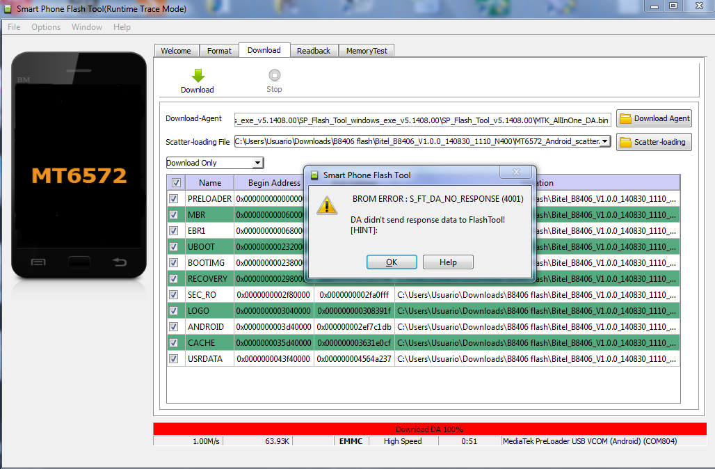 –> Choose Option->DA DownLoad All->Speed->High Speed, click High Speed