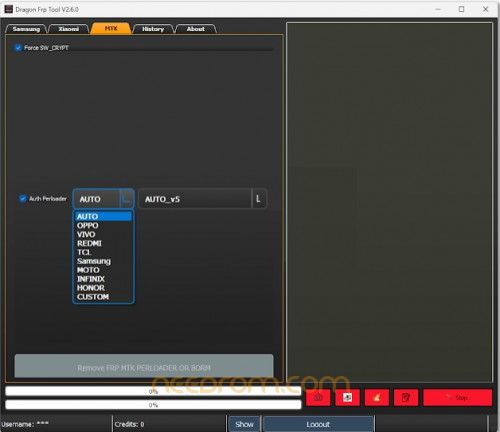 Dragon FRP Tool V2.6.0 is a handy program with tabs for Samsung, Xiaomi, and MTK devices. It offers options like FRP removal, factory reset, and reading device info. I’ve bypassed the login myself—so now you can enter any username and password to open the tool and access some features.