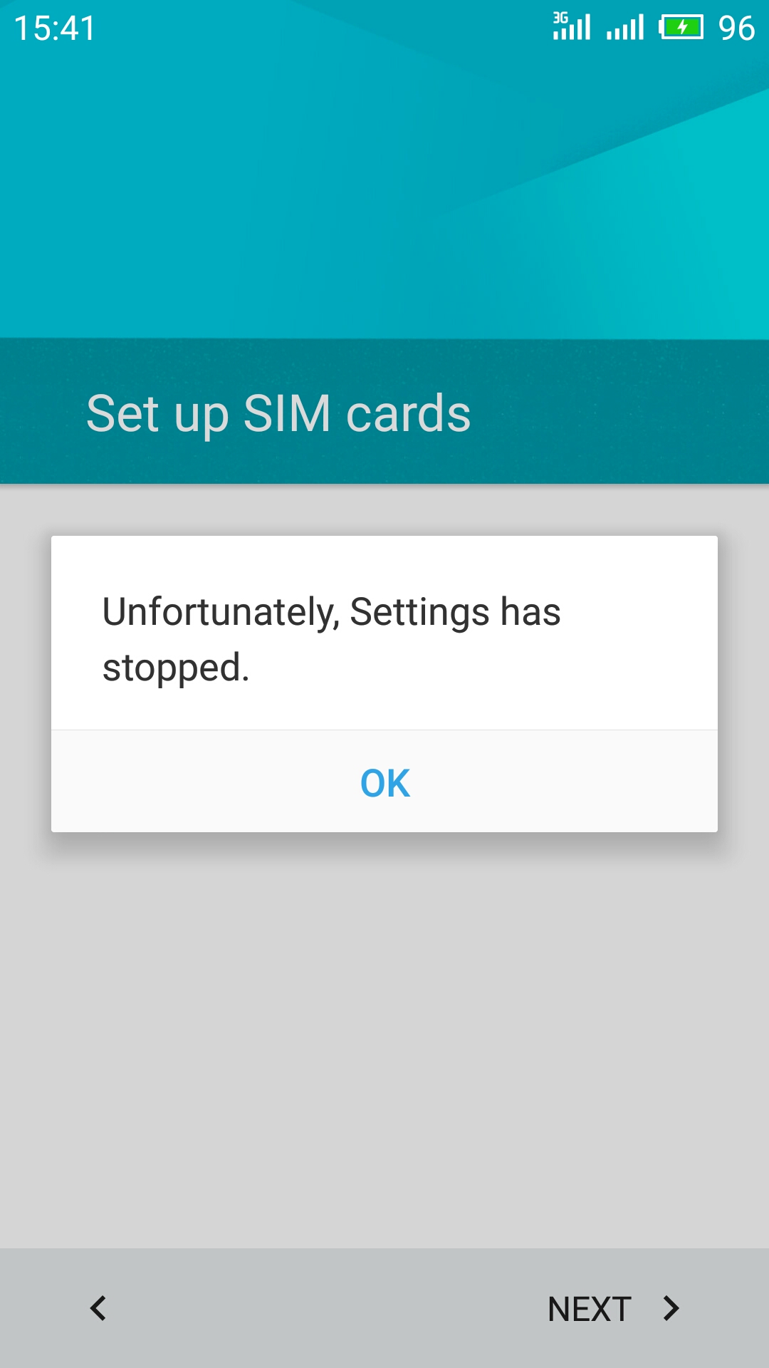 Can't setting rom on step 4. Notification: "Unfortunately, settings has stopped".