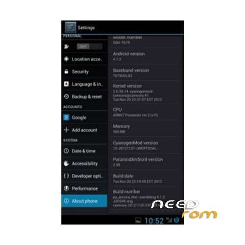 - Version: ROM Paranoid Android 4.1.2 Jelly Bean