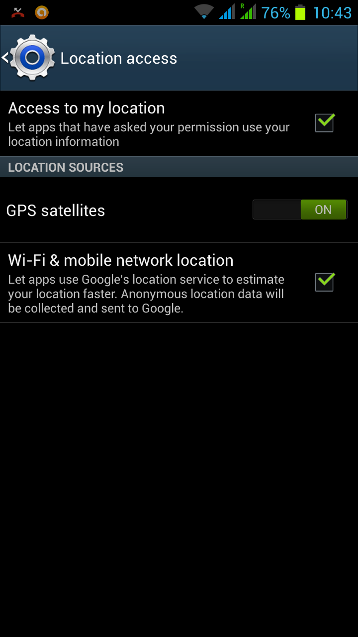 settings –>location access–>GPS satellites–>A-GPS