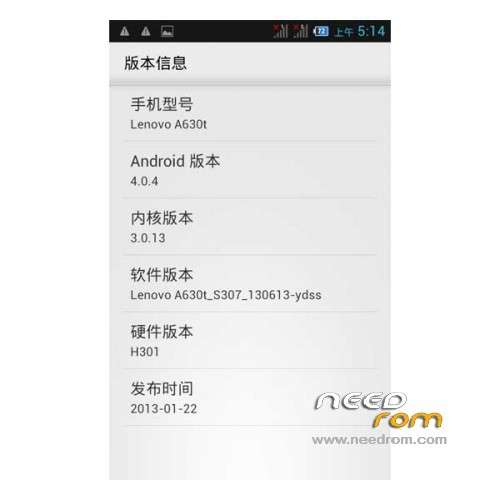 ROM version number:Lenovo A630t_S307_130613
