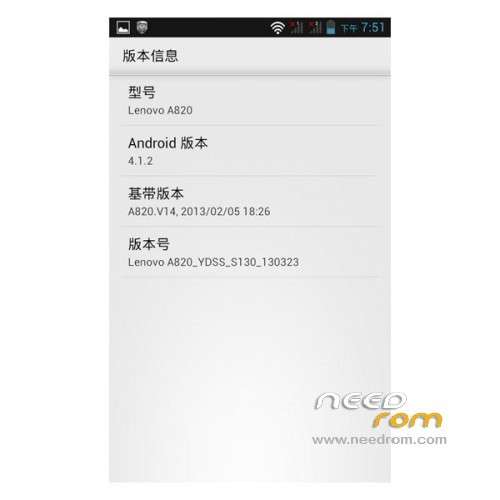 ROM version number: Lenovo A820_YDSS_S130_130325