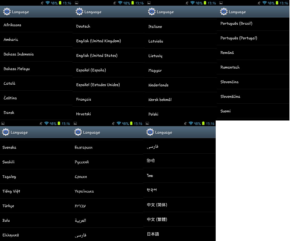 I'll try every ROM I install to upload pics of languages.