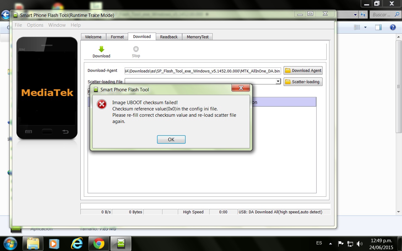 Hello, a few days ago i´ve left a note with a problem. Please, when i try to load the scatter file into Flashtools, it says "Image UBOOT checksum failed!" and can´t get forward… Any solution to this, please? I really apprecite any comment, tip or whatever help you can give me. Thanks a lot.