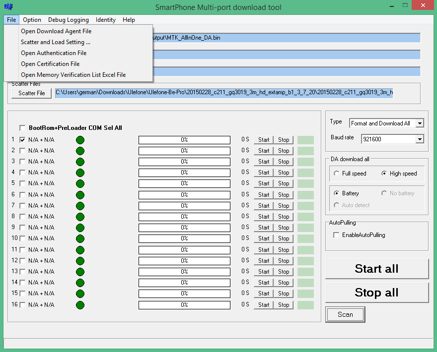 8). Click File and select the MT6752_Android_scatter.txt file (it's in the folder with the rom).