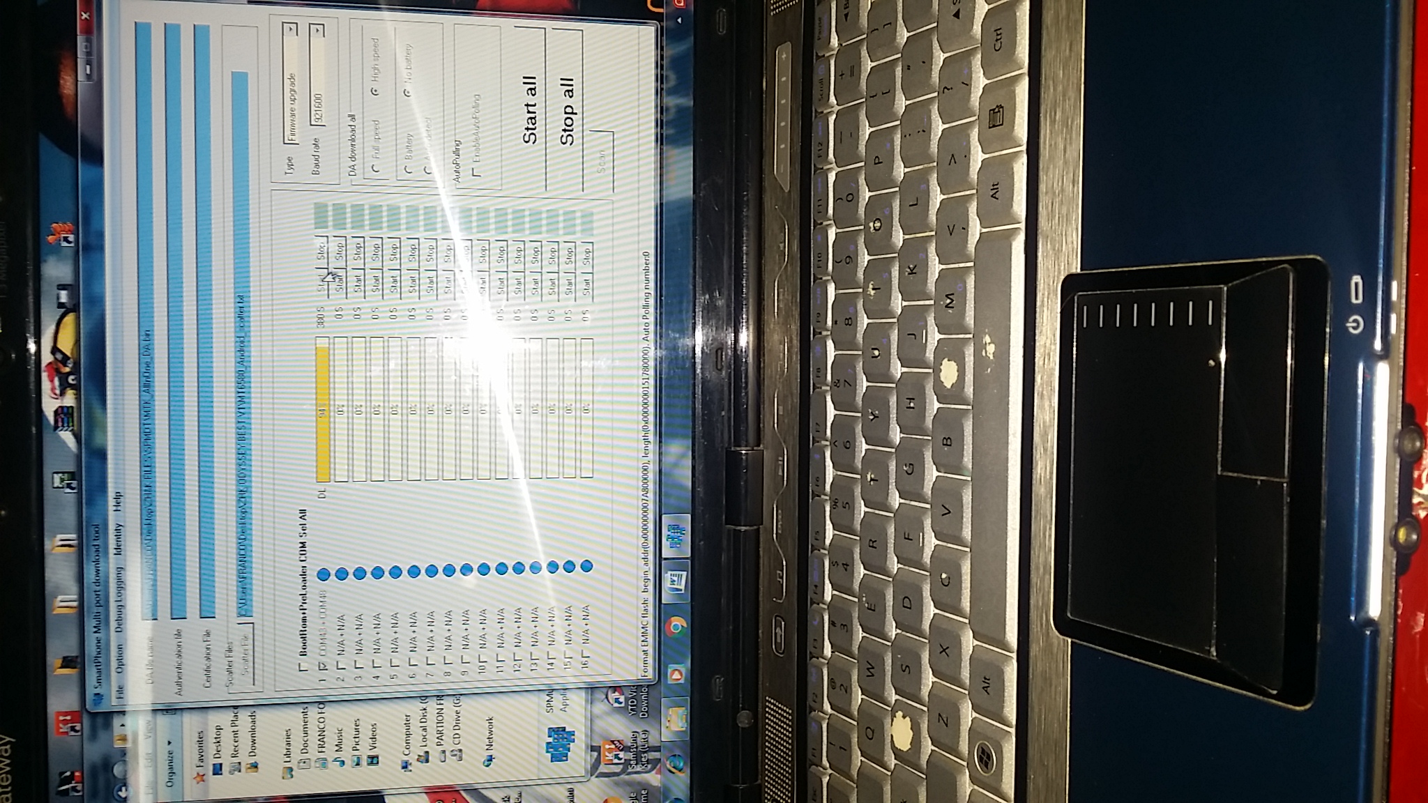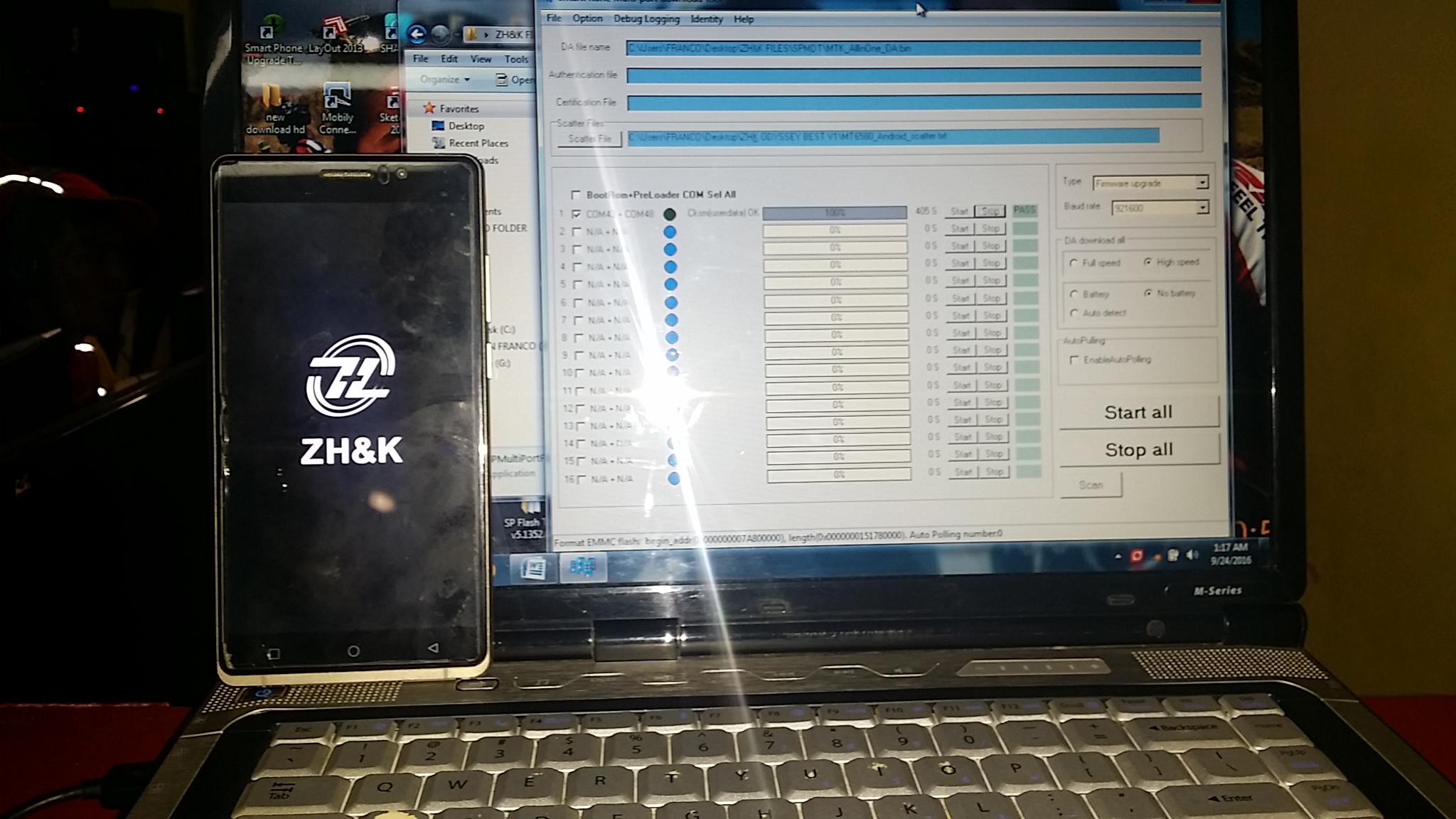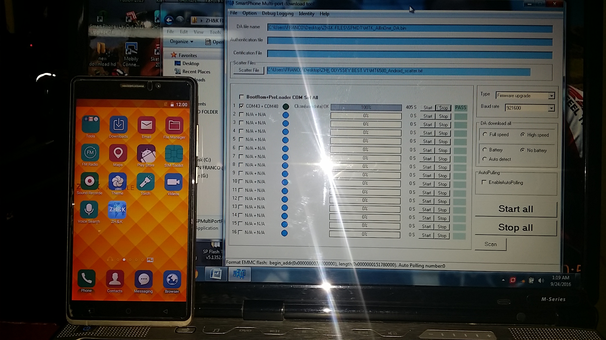 9). Connect your phone to a computer cable. The program should see and blink. If the phone is not detected, then unplug it from the computer,