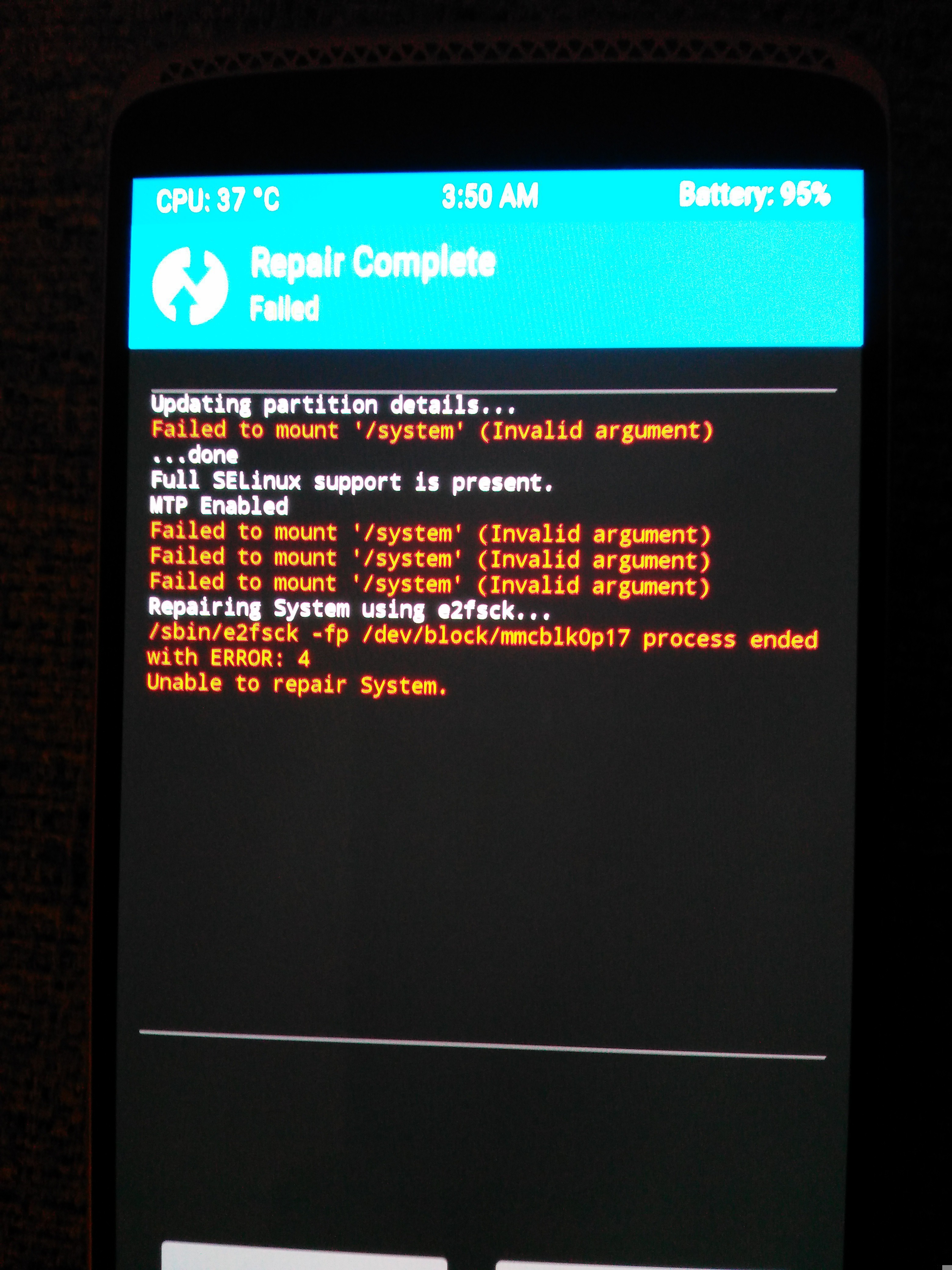 However both failures above are harmless, you won't loose anything, just restart recovery, flash the correct aboot file and you are good to go again.