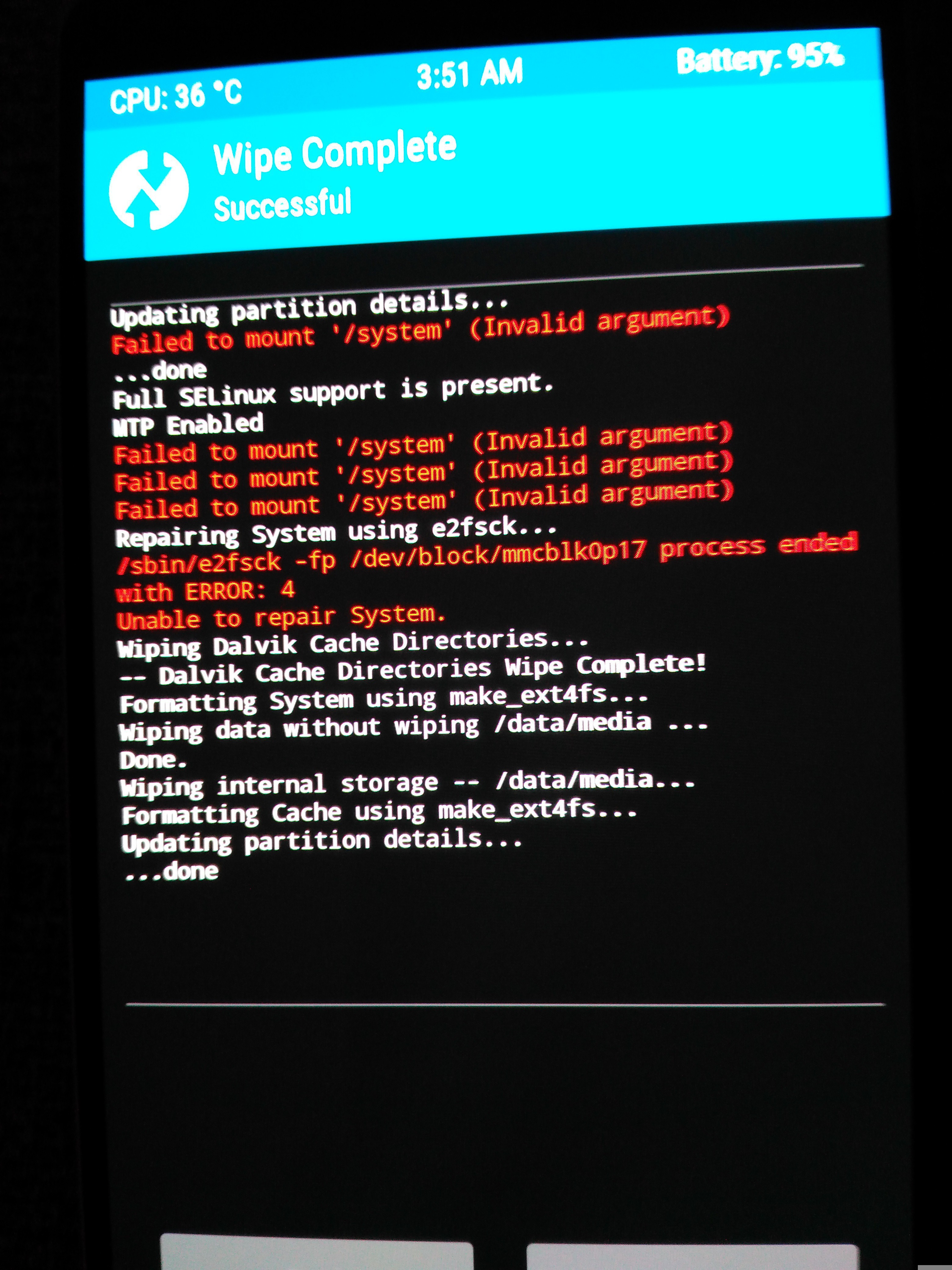 When I try advanced wiped I get a system partition mount error.